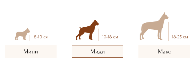 Мы рекомендуем выбирать комплекты высотой на уровне локтя собаки, но вы всегда можете выбрать уже известную вам удобную высоту для вашего питомца.